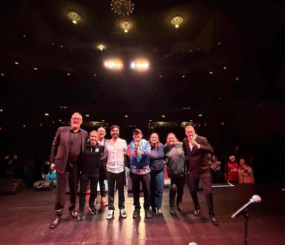But the real treat was after the intermission. Just before, they played three tasks to bring three audience members up on stage for a live version of the television show. They were joined by two comedians. In Philly, these were Chris Gethard, a Philly comedian, and Paul Chowdhry (Series 3 contestant).